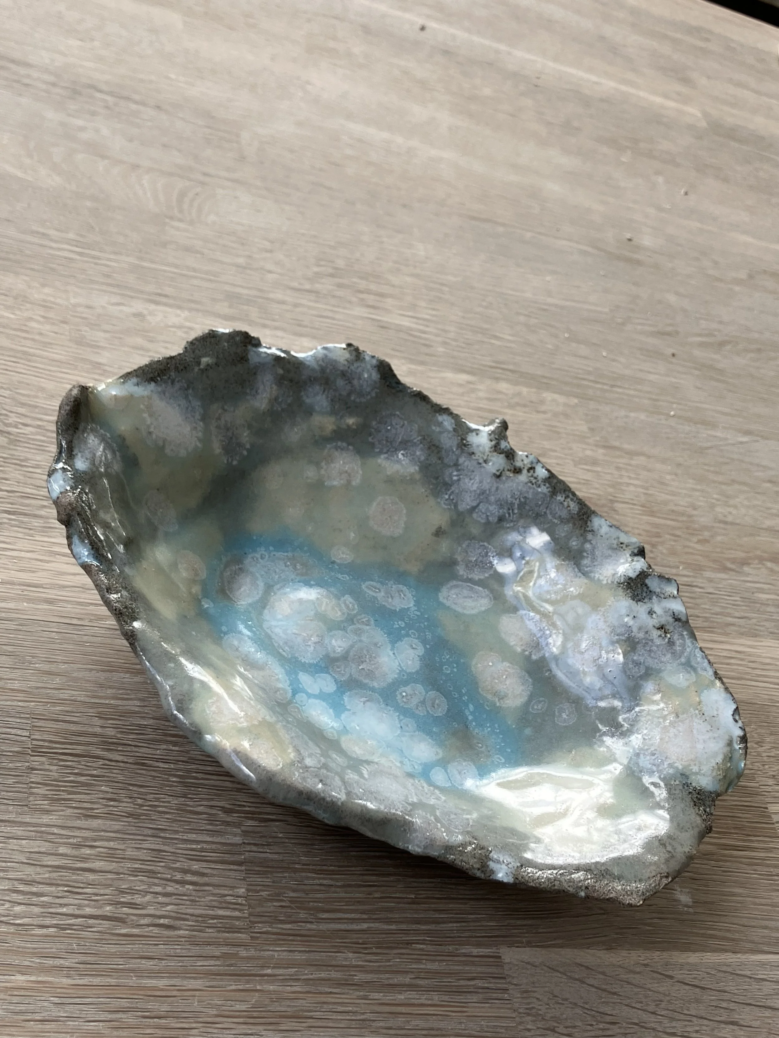 - two different clay bases (structured grey and fine white) double glazed and handbuilt.